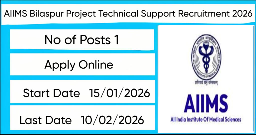 All India Institute of Medical Sciences Bilaspur (AIIMS Bilaspur) has released an official notification for the recruitment of 01 Project Technical Support Posts. Interested and eligible candidates can apply Online through the official AIIMS Bilaspur website. The last date to submit the application form is 10-02-2026. In this article, you’ll find the AIIMS Bilaspur Project Technical Support Posts recruitment details, including eligibility criteria, age limit, salary structure, selection process, application steps, and direct links to the official notification and Online application form.