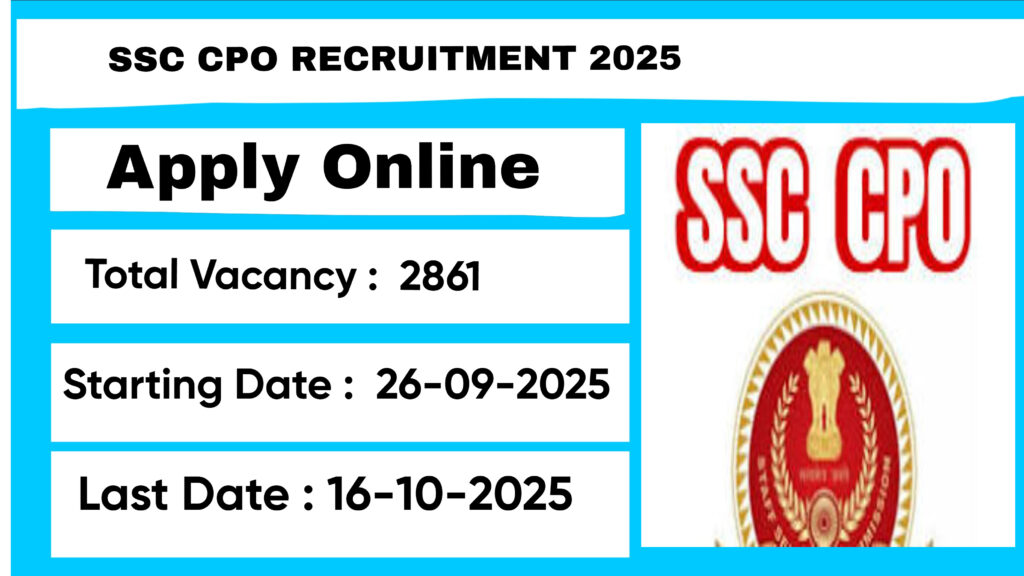 Apply for SSC CPO Sub-Inspector Recruitment 2025! Online applications open 26-09-2025 and close 16-10-2025. Don’t miss this opportunity. Eligible candidates apply directly through the official SSC website now.