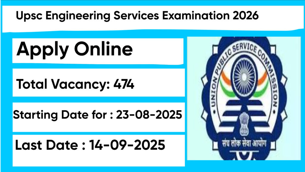 The Union Public Service Commission (UPSC) has released an official notification for the recruitment of 474 Engineering Services Examination 2026 posts in Acoss India. Interested and eligible candidates can apply Online through the official UPSC website. The last date to submit the application form is 16-10-2025.