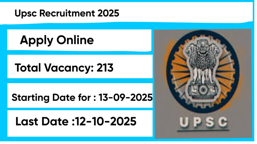 The Union Public Service Commission (UPSC) Recruitment 2025 for 213 posts of Lecturer, Medical Officer and More. Candidates with LLB, MBBS Can Apply Online. The online application opens on 13-09-2025, and closes on 12-10-2025. The candidate shall apply online through UPSC website, upsc.gov.in.
